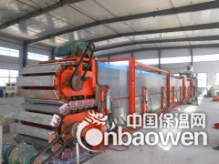 高性能防火聚苯板板材连续生产线主要由开卷机,卷材成型机,预热辊道,发泡机,布料机,双履带机,定尺切断机,及辊道等组成。